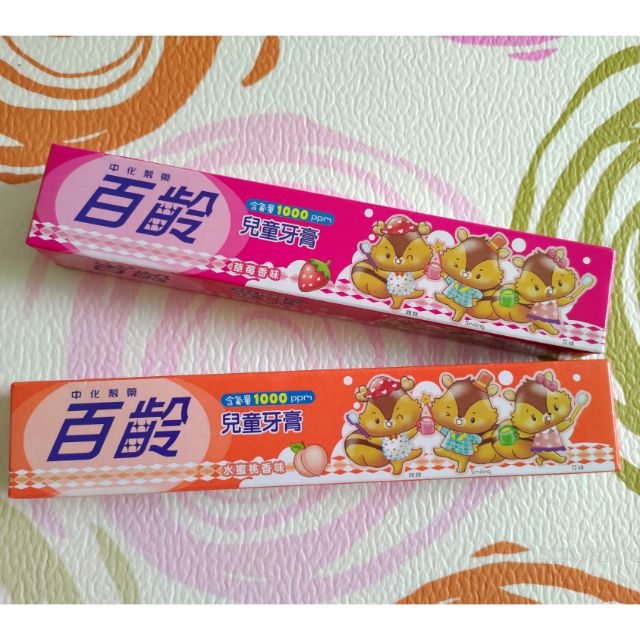 百齡兒童牙膏50g 草莓 水蜜桃 青蘋果含氟量1000ppm 蝦皮購物